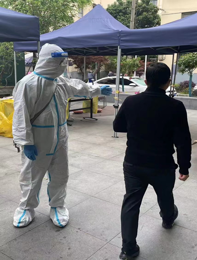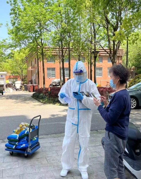 Since the current epidemic outbreak, Chen Zhenpeng, Member of the CPC SIG Committee and Director of the Organization Department, has assisted his community in volunteer work, including nucleic acid testing, supplies carrying and resident service. Upon receiving a notice from the Organization Department of the CPC Jing'an District Committee on April 16, he, who had just taken off the protective suit, immediately hurried to the Zhangjiazhai Neighborhood Committee, Shimen Second Road Sub-district to which he would assist. There are nearly 3,000 residents in the large international communities and old-fashioned residential communities governed by the Zhangjiazhai Neighborhood Committee, the communities have complicated internal structures, and the epidemic situation was grim and complex in the communities. Upon reporting to the neighborhood committee, he immediately devoted himself to new volunteer work. He helped to carry vegetables, rice, oils and other supplies, scanned nucleic acid test code for 500-600 residents, stood in the scorching sun for 3-4 hours, often trotted in a hurry to deliver test supplies to 8-9 nucleic acid test points in the community, and sometimes took risks to go upstairs six-floor buildings closed down due to positive cases to deliver living supplies. As the leader of the volunteer team, after finishing a whole day of volunteer work, he would communicate with the team members in the volunteer WeChat group of SIG, to find out their working and living conditions, inspire them and boost their confidence, thereby bringing them together to develop new combative competitiveness.