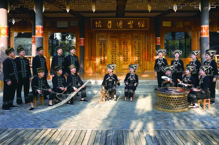 非遗项目的保护、宣传、传承和创新并非只靠传承人之力即可实现,而是更待社会各界的通力合作。在上海市国资委和上海国际集团的领导下,上海国有资产经营有限公司(以下简称:上海国资经营)自2019年发起文化遗美走访活动,通过走访拍摄、艺术品定制开发、公开展览等体系化探索与扶持,让更多人了解和关注非遗文化,既促进产业发展与村民增收,又扶助非遗保护与技艺传承,赓续历史文脉、激扬时代活力,发现文化遗美、推动地区新生。过去三年,本报记者已跟随其脚步先后走访了弦子舞、火草制作、水竹伞制作、银器制作、民族刺绣技艺等五站非遗项目及相关非遗传承人,今年在第六站的走访中,更是发起文化遗美“拾音之旅”,为非遗项目“搭台唱戏”,促使昆剧和坡芽歌书两个原本天各一方的国家级非遗项目“山海相逢”,打响沪滇文化品牌。这碰撞、融合、跨界的过程也并非易事,还特别得益于云南省文山州富宁县委、县政府和上海昆剧团的多方努力,合奏出一段同音共律的华丽乐章。