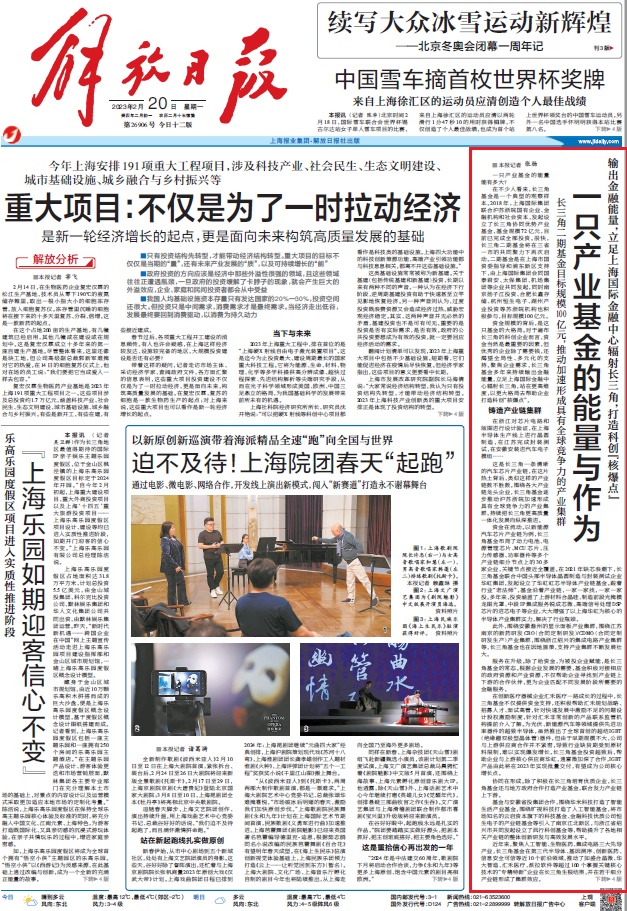 近年来,聚焦人工智能、生物医药、集成电路三大先导产业,长三角基金在第三代半导体、基因测序、创新医药、信息安全可信等近10个前沿领域,推动了如盛合晶微、华大智造、汇禾医疗、派拉软件等超过100个掌握关键核心技术的“专精特新”企业在长三角生根结果,并在若干细分产业链形成了集群效应。 下转 4版