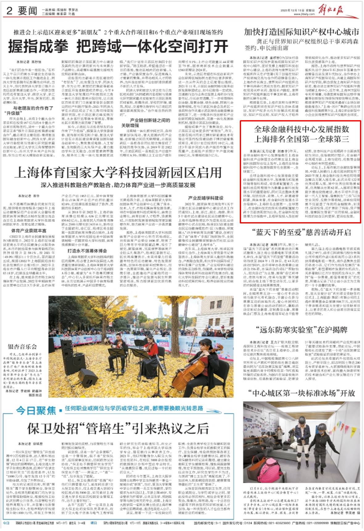 解放日报|全球金融科技中心发展指数 上海排名全国第一全球第三