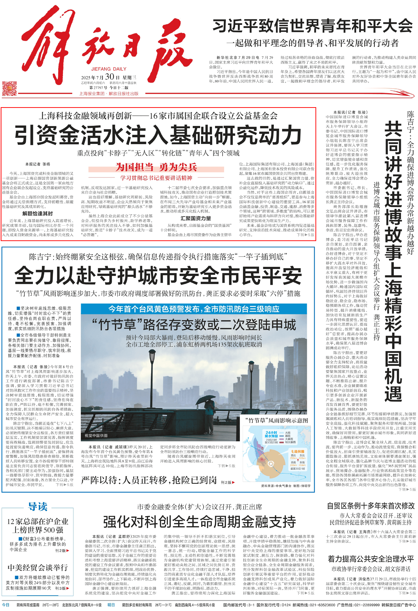 《解放日报》头版|引资金活水注入基础研究动力,上海科技金融领域再创新——16家市属国企联合设立公益基金会
