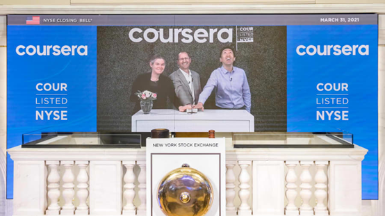 美国东部时间3月31日,赛领资本投资的全球领先在线教育平台企业——Coursera成功登陆纽约证券交易所。至当日收盘,Coursera(NYSE:COUR)的市值达到近59亿美元,每股价格收于45.00美元,较33.00美元的IPO发行价上涨36.36%。