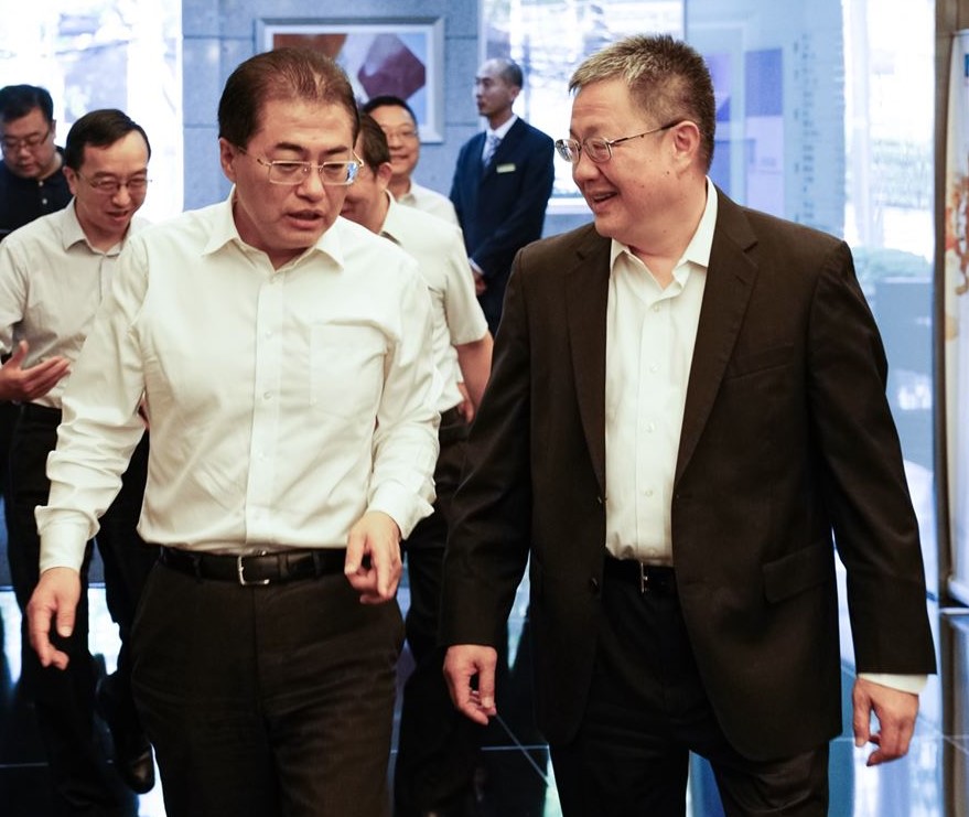 8月21日上午,国务院国资委副主任翁杰明一行在市国资委党委副书记肖文高陪同下,调研上海国际集团。