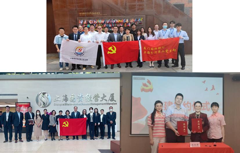 上国投资管公司党支部与上海地铁1号线管理部第二党支部围绕党建品牌建设开展联学共建。上海地铁1号线管理部第二党支部“地铁好邻居”品牌和上国投资管党支部“五彩党建”品牌同为市国资委优秀基层党支部品牌,双方将充分发挥各自品牌优势,围绕精神文明单位创建、志愿者服务等工作,加强资源共享、优势互补,助力公司上海市文明单位创建,构建党建引领业务高质量发展的新格局。国资经营公司第二党支部与中国银行上海市分行战略客户部党支部联合举行主题教育专题学习,开展党建品牌建设经验分享交流,并签署党建联建协议,持续推进“助发展,强保障,看我行”的支部品牌建设,助力公司战略发展。国资经营公司第三党支部联合厦门国际银行上海分行第二党支部开展“共建学思想 共赢建新功”主题联学共建,通过情景党课、共建交流等多种形式,分享支部特色品牌与亮点工作,聚焦业务巩固深化合作关系,实现“共建、共创、共享、共赢”。