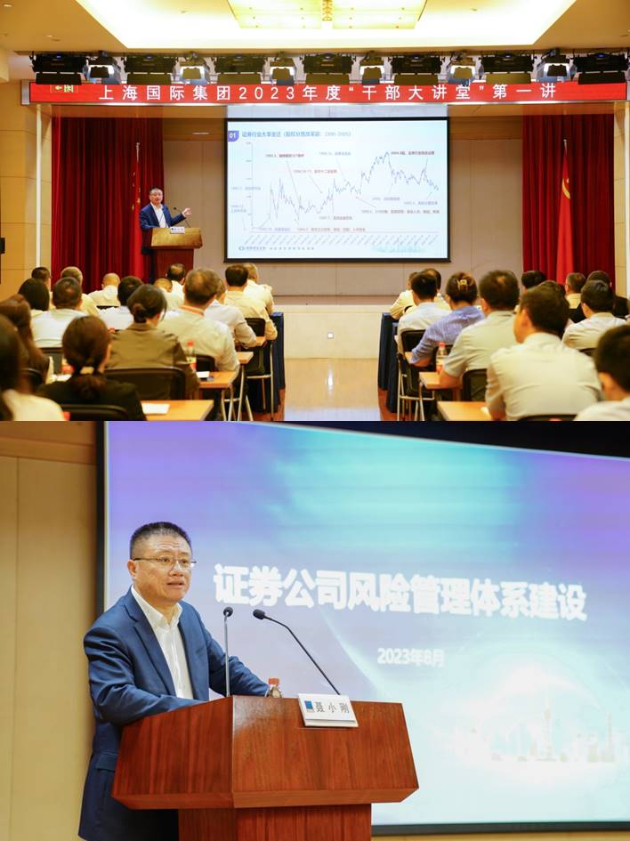 集团2023年度“干部大讲堂”于8月4日正式开讲。第一讲邀请国泰君安证券副总裁、首席财务官、首席风险官聂小刚围绕“证券公司风险管理体系建设”进行专题授课。
