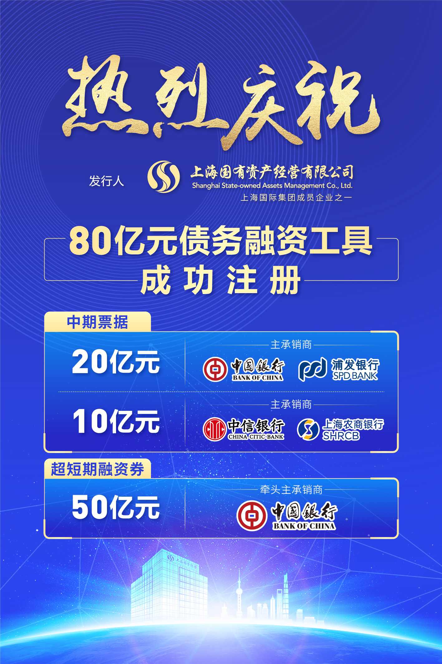8月10日,国资经营公司获批中国银行间市场交易商协会(以下简称“协会”)30亿元中期票据、50亿元超短期融资券的债务融资工具注册额度,批文有效期两年。