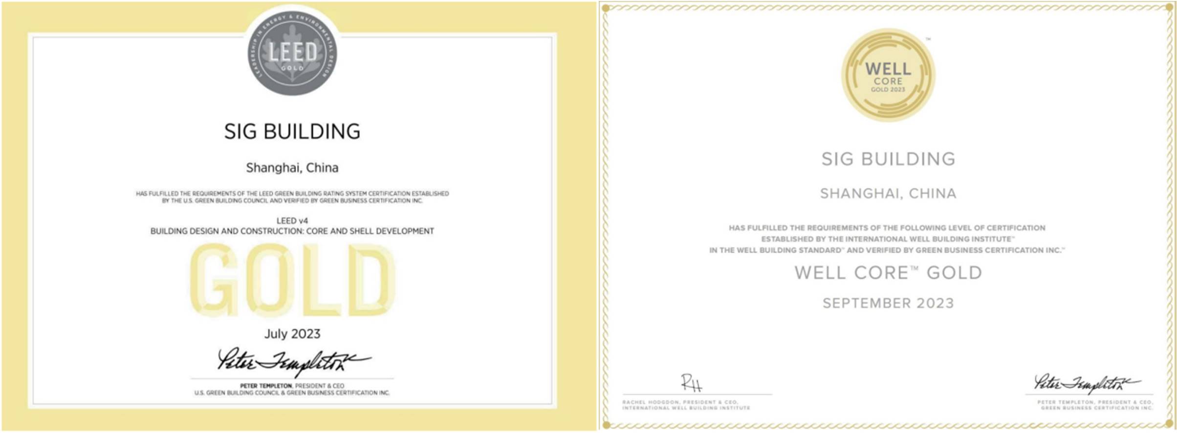近日,集团旗下外滩国际大楼获得LEED和WELL双金级认证。