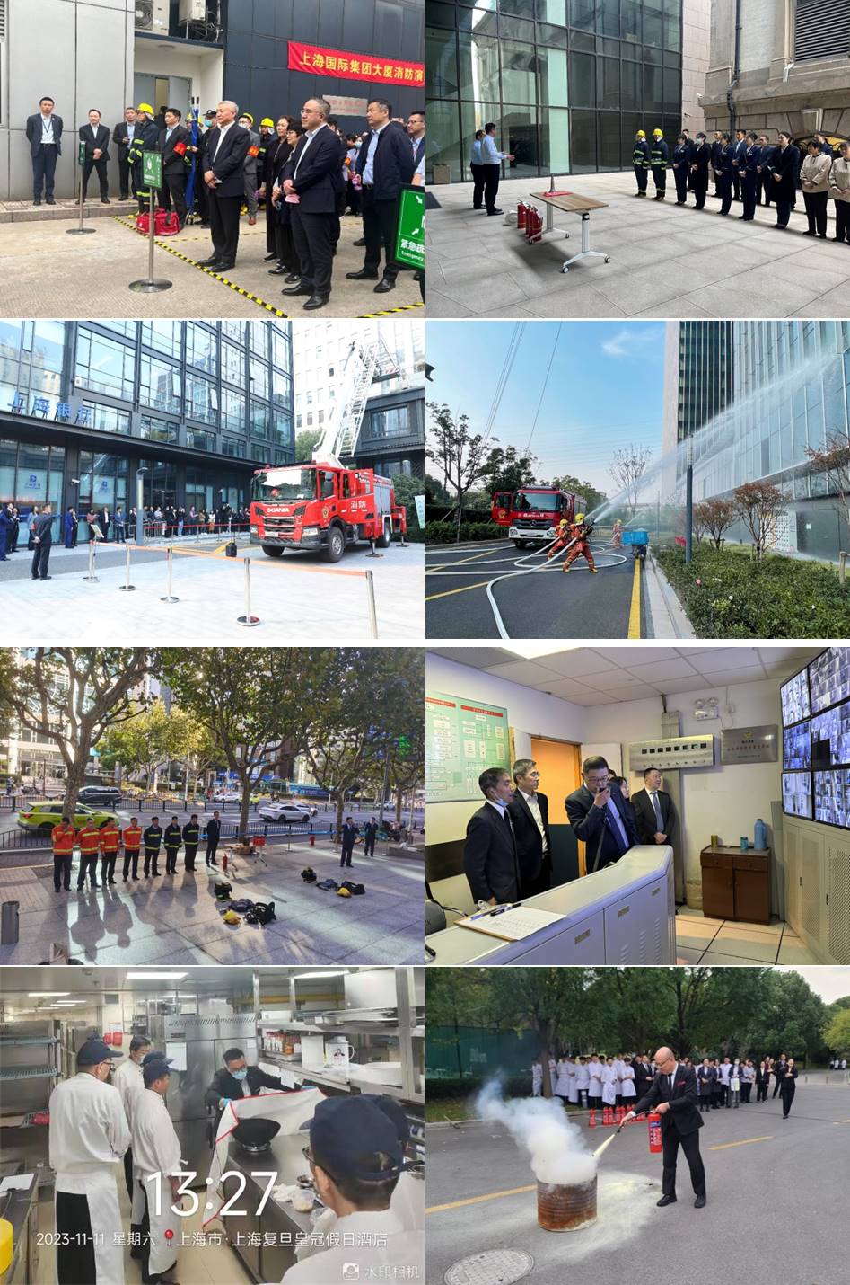 上海国际集团大厦模拟集团某处突发火情,现场上演“疏散逃生课”,邀请防灾减灾志愿服务中心专业人员进行专业演示,通过消防实战演练增强职工安全意识,达到了锻炼队伍、协调配合、快速处置的目的,积累了宝贵的实战经验。外滩国际大楼参与外滩消防救援支队主题活动,组织开展应急疏散演练、消防器材操作培训、义务消防员战斗服穿戴及卷盘操作比武等,提升全员消防安全意识及应急处置能力。国资经营大厦分析研判新形势下消防安全风险,邀请徐汇区应急救援支队专家,以案例分析方式开展针对性消防培训,以互动形式科普逃生小技能“打绳结”,开展查找身边隐患“大家来找茬”活动,组织高空云梯解救等实战演练。上海国际财富中心拍摄“消防安全公开课——高层民用建筑消防安全管理和疏散逃生”视频,在楼宇内循环播放,并作为浦东消防支队消防安全直播遴选项目在上海消防微博、抖音等社会媒体平台公开。新上海国际大厦开展消防疏散演习,锻炼应急工作人员火警处置能力,增强楼宇租户自救互救技能。海仑宾馆、复旦酒店、夏阳湖酒店等结合本单位经营特点,以灭火为主要培训专题,通过手持式灭火器使用演练、易燃点灭火流程培训、科普灭火毯正确使用方式、油锅灭火实操演练等形式,使员工熟悉应急灭火操作,掌握正确扑灭火情的方式,做到消防安全专项培训“全覆盖”。