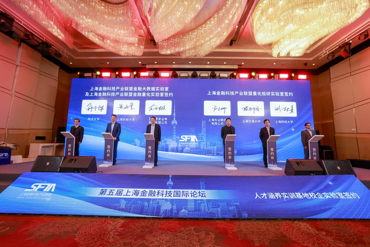主论坛上进行了上海金融科技产业联盟金融大数据实验室、金融量化实验室、量化投研实验室三家“校企联合实验室”的签约仪式。国泰君安证券股份有限公司、上海东证期货有限公司等金融企业与上海交通大学、上海财经大学、同济大学等高效签署了合作协议。“校企联合实验室”是上海金融科技产业联盟依托上海金融科技人才涵养实训基地,推动产业联盟物理载体、金融机构、科技企业、高等院校、科研院所等开展合作,共同搭建的以加快金融行业数字化转型、深化行业关键核心技术应用、提升企业金融科技竞争力为目标的重要产学研合作平台。