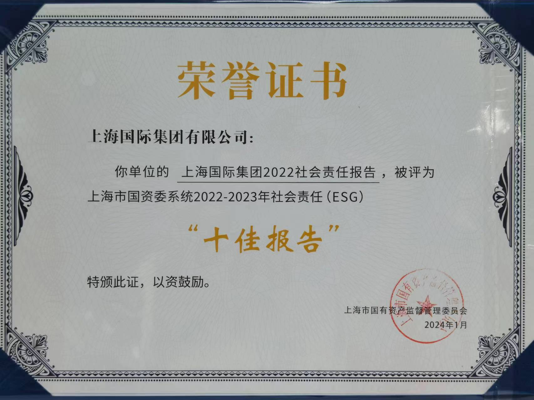 上海国际集团2022年度企业社会责任报告获评“十佳报告”