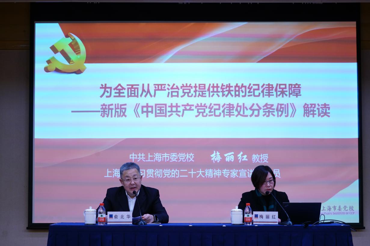 根据集团党委2024年度中心组学习安排,为深入学习贯彻习近平总书记重要指示精神,加强对新修订的《中国共产党纪律处分条例》的准确理解和贯彻执行,进一步落实管党治党政治责任,加强纪律作风建设,2月22日下午,集团召开党委理论学习中心组学习会,邀请原中共上海市委党校副校长、上海行政学院副院长梅丽红教授,作题为《为全面从严治党提供铁的纪律保障——新版纪律处分条例解读》的专题辅导报告。