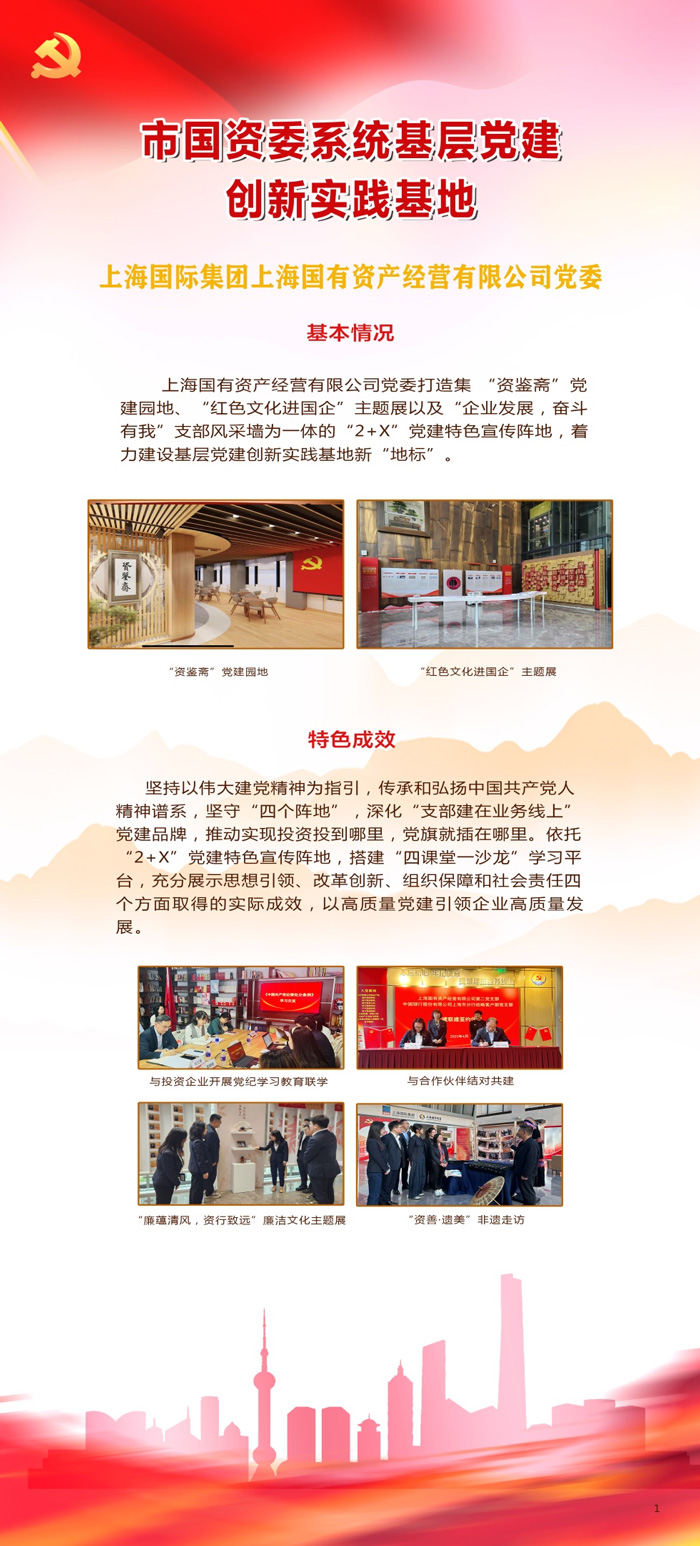 7月1日,市国资委党委印发《关于命名上海市国资委系统“基层党建创新实践基地”的决定》,授予市国资委系统15家基层党组织“基层党建创新实践基地”称号。此次命名的“基层党建创新实践基地”,是市国资委进一步加强基层党建阵地建设,打造的一批具备经验交流、成果展示、现场参观、引领示范等功能的基层党建阵地标杆。经过申报推荐、实地检查、现场评审等环节,集团下属国资经营公司党委光荣上榜,被评为市国资系统“基层党建创新实践基地”!