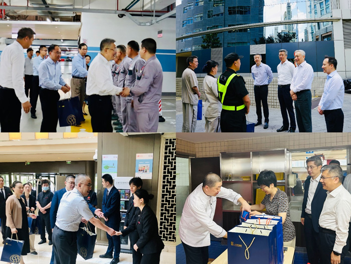 为切实做好防暑降温工作,保障人员生命安全和身体健康,7月24日,集团党委书记、董事长俞北华,党委副书记、总裁刘信义等集团领导班子成员分路前往集团下属楼宇、酒店、宾馆,慰问高温下坚守岗位的员工。