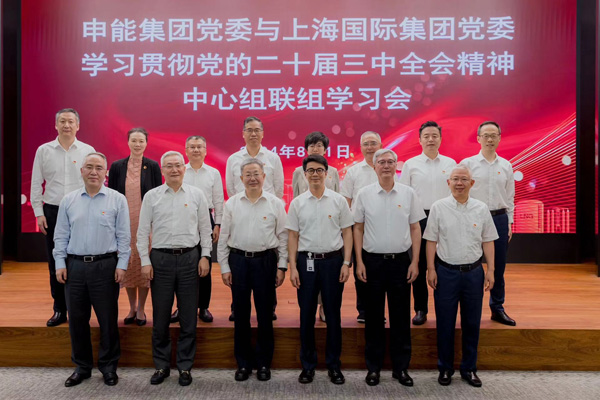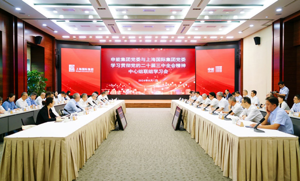 为深入学习贯彻党的二十届三中全会精神和十二届市委五次全会精神,8月1日下午,集团党委书记、董事长俞北华带队,党委副书记、总裁刘信义等领导班子成员前往申能集团,与申能集团党委书记、董事长黄迪南,党委副书记、总裁倪斌等领导班子成员开展党委中心组联组学习。