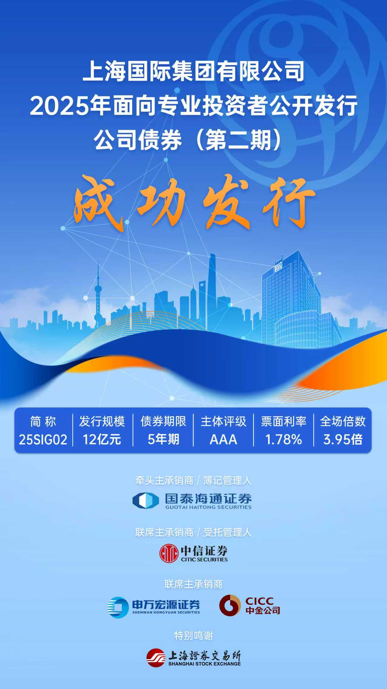 2025年8月21日,集团本部成功簿记发行12亿元公司债券,期限5年,认购倍数3.95倍,票面利率1.78%。本期公司债的成功发行旨在全力服务上海国际科创中心建设,壮大新质生产力。
